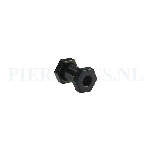 Tunnel; de achterkant is voorzien van schroefdraadGemaakt van zwart chirurgisch staal.Diameter: 5 mmDikte: 10 mm