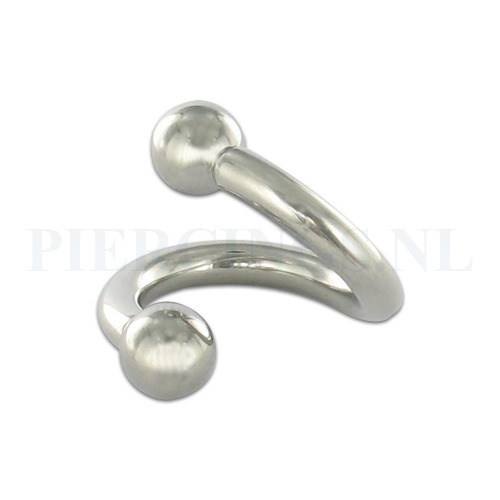Twister piercingGemaakt van chirurgisch staal; het staafje is verwisselbaar.3 x 12 x 6 mm balletjes (dikte staafje x lengte staafje x dikte balletje)
